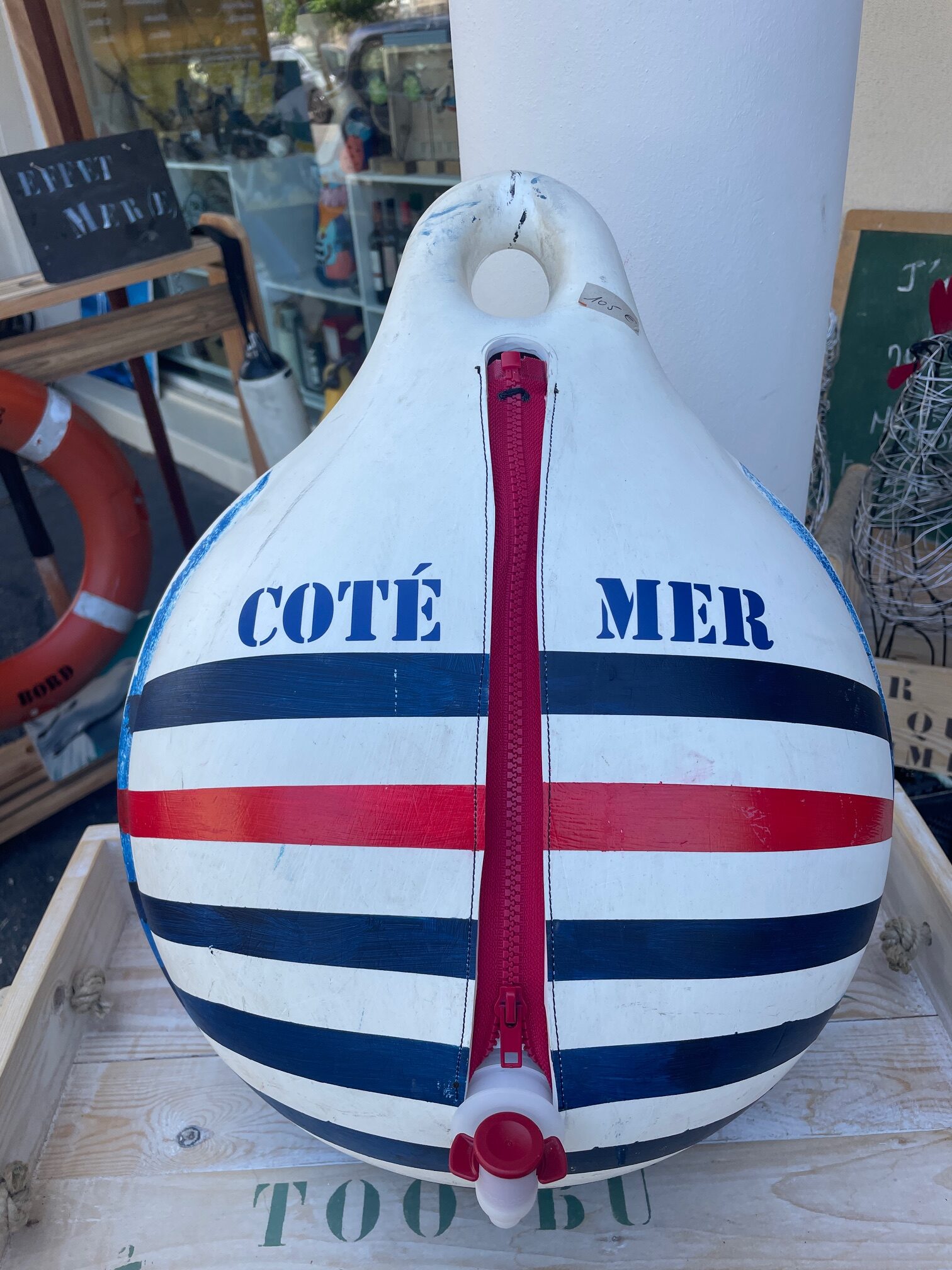 Né de l’imagination de Patou et de son cousin, le Pare Bat’ Cubi redonne vie à de véritables pare-battages de bateau, transformés en objets décoratifs aussi originaux que pratiques. Derrière son allure de déco marine se cache une idée ingénieuse : un contenant prêt à accueillir tout type de cubi — vin, rhum ou autre breuvage festif — pour des apéritifs qui sentent bon le large. À la fois pièce de design et symbole de partage, le Pare Bat’ Cubi incarne l’authenticité, la créativité et l’art de vivre à la française.