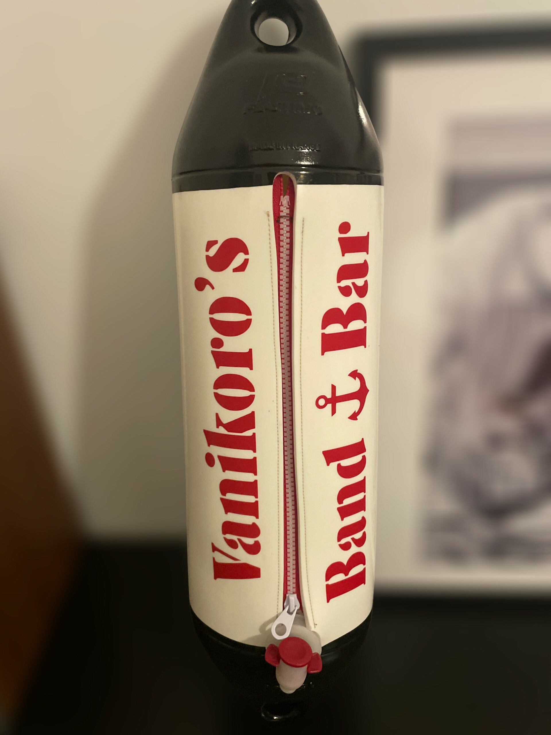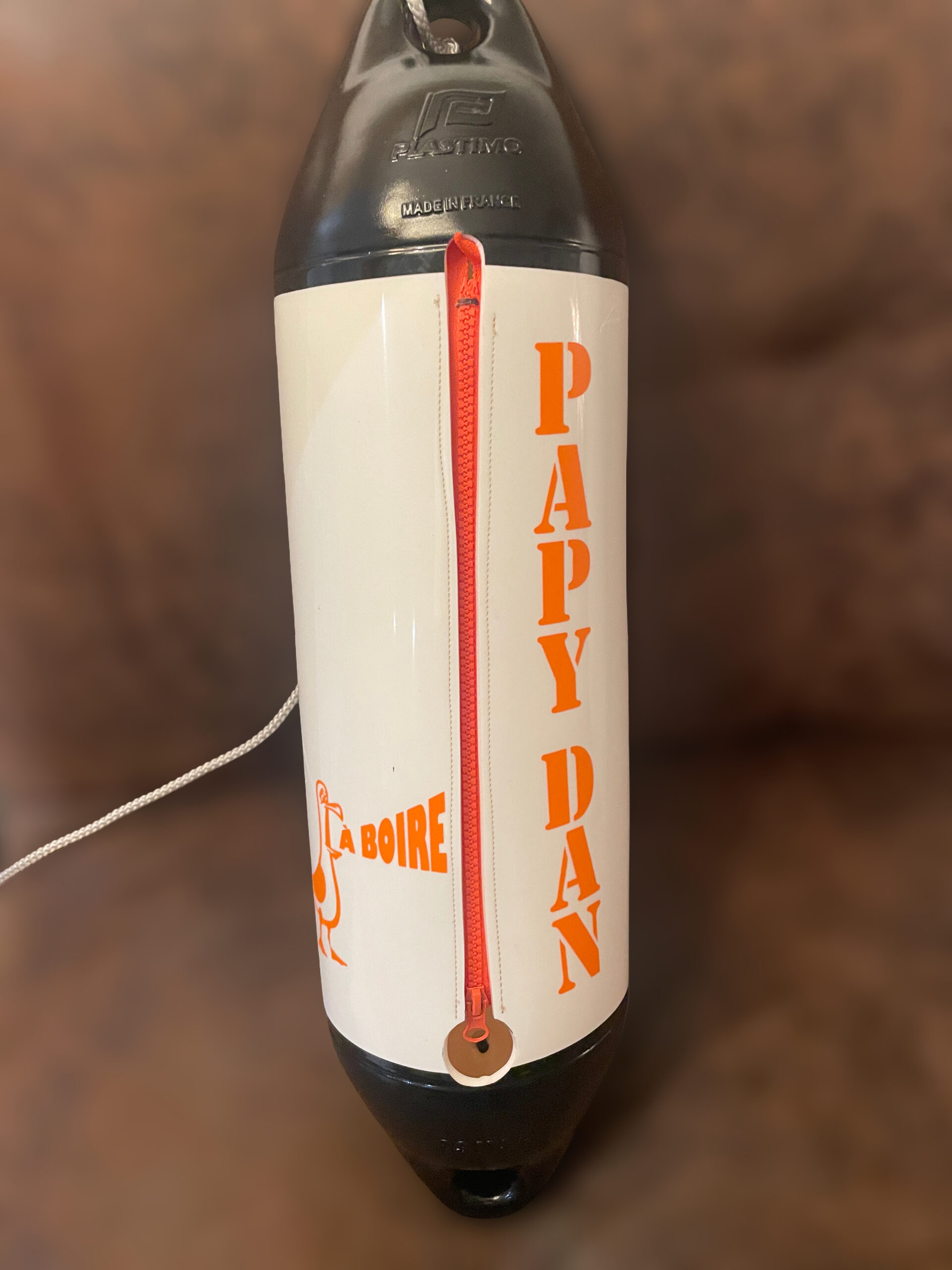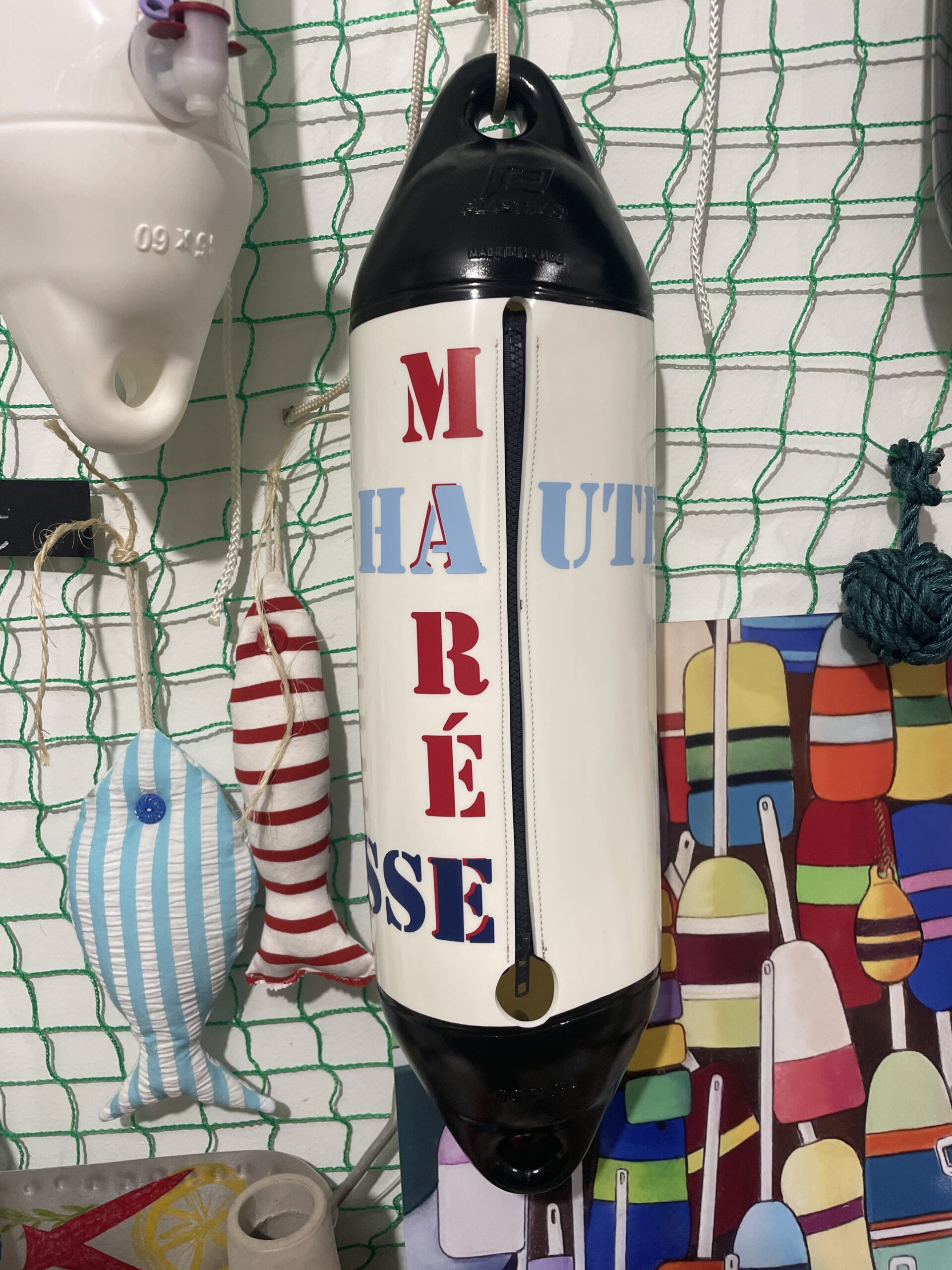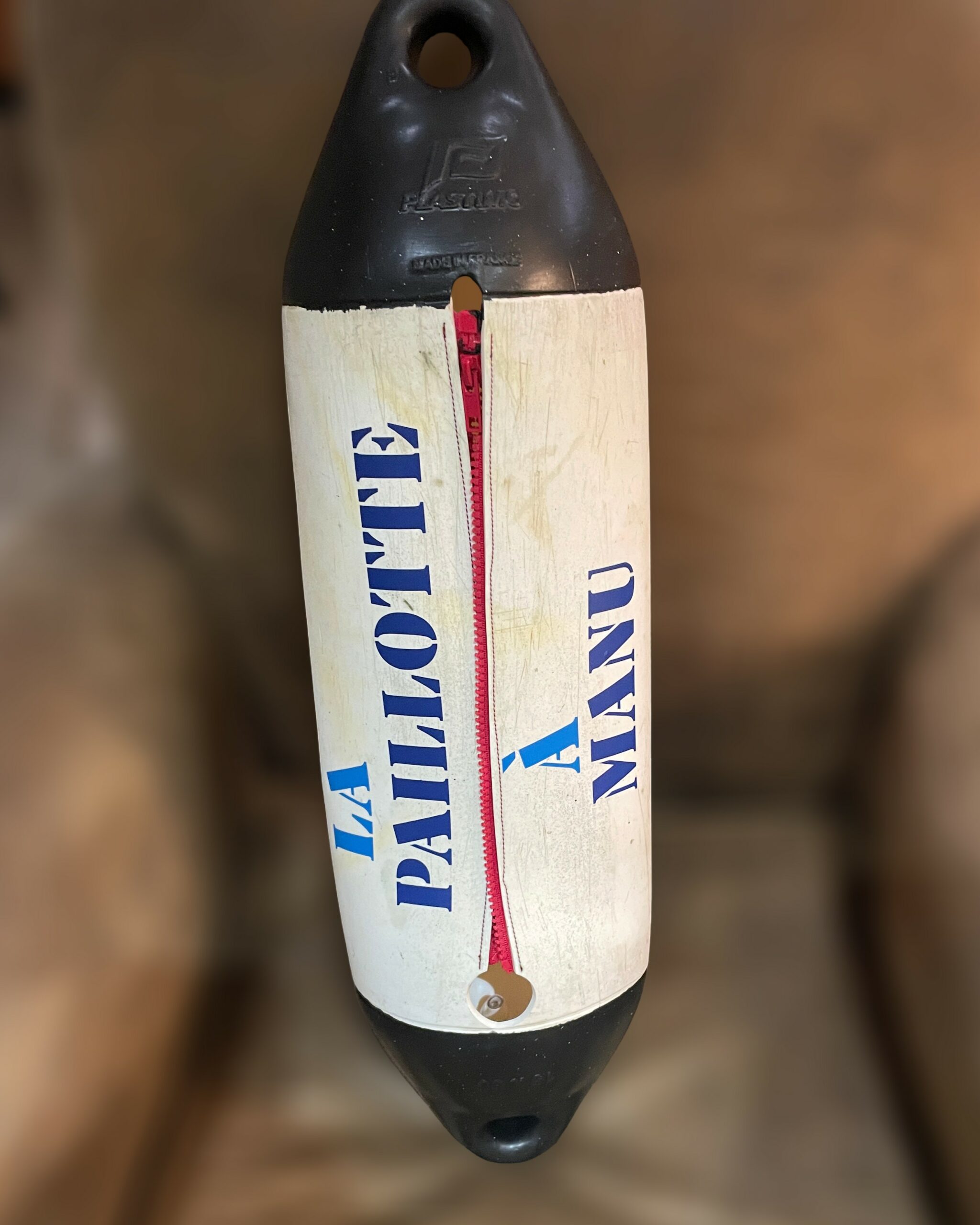 Né de l’imagination de Sébastien et immédiatement adopté par Patou, le Pare Bat’ Cubi a trouvé sa place dans la boutique L’Effet Mèr(e). Né du projet de recyclage des pare-battages, ils ont eu l’idée de les transformer en objets décoratifs aussi originaux que pratiques. Derrière son allure de déco marine se cache une idée ingénieuse : un contenant prêt à accueillir tout type de cubi — vin, rhum ou autre breuvage festif — pour des apéritifs qui sentent bon le large. À la fois pièce de design et symbole de partage, le Pare Bat’ Cubi incarne l’authenticité, la créativité et l’art de vivre à la française… Sur votre bateau, sous la paillotte ou tout simplement à l’endroit le plus approprié.